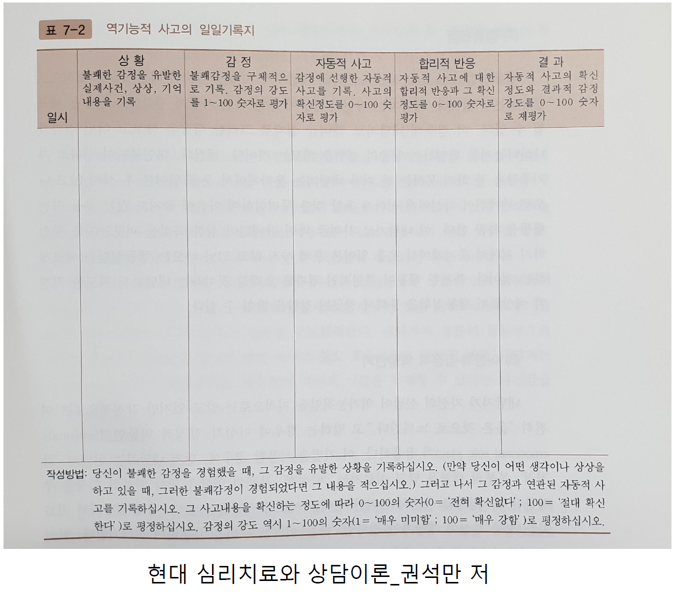 - 역기능적 사고의 일일기록지(daily record of dyfunctional thoughts)