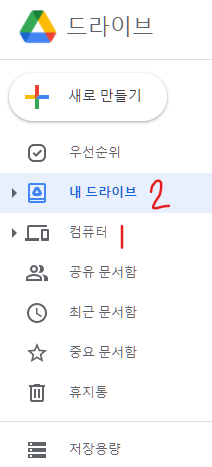 2) 수동백업은 자동백업에 가끔 오류가 생기고 인터넷이 느리면 한없이 느려지기에 불안해서 만든 거에요. 위에 사진처럼, 구글 드라이브 백업을 활용하면 컴퓨터 라는 탭이 생깁니다. 내드라이브는 원래 디폴트값이구용 :-)