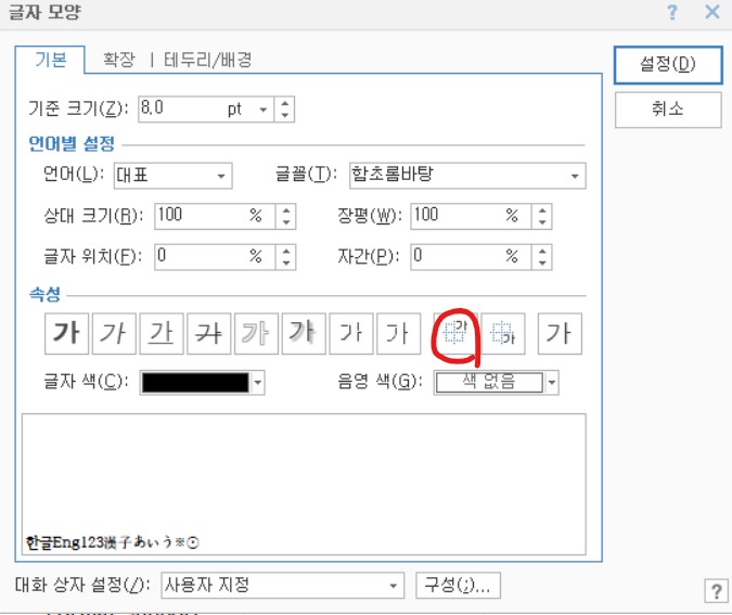 서식 > 글자모양 > 속성