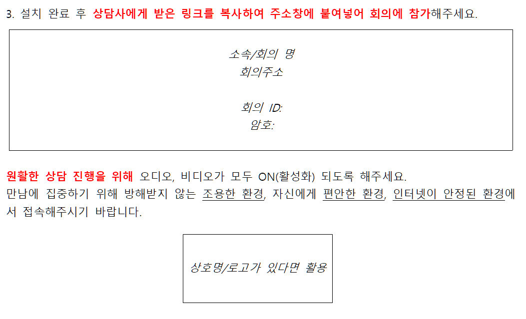 저는 비대면 상담 시에 비대면 상담 안내문을 내담자에게 먼저 전송해드리고 있어요.