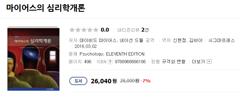마이어스의 심리학개론은 시간이 여유있으신 분들에게 추천드립니다. 이론을 잘 정립해서 면접 때 지식질문을 위한 답을 준비하기에 최적화된 책은 아닌 것 같아요. 마이어스의 심리학개론은 사회적인 부분, 심리적인 부분, 신체적인 부분을 전~부 다루고있어요. 저는 이 책이 재밌어서 2번 정독하고 3번째에 이론 중심으로 요약공부를 했었는 데, 인간에 대한 큰 그림을 그리기에 최적화된 책이에요. 심리학의 흐름만 다룬 게 아니라, 그 당시에 육체적인 어떤 부분에 관심이 있었고 그 흐름에 따라 심리의 어떤 부분이 대세가 되었다 혹은 그 반대에 대해 다루고있습니다.