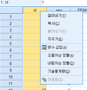 파일 MERGE과정 대신 엑셀을 활용하게 되면 SPSS로 정리된 파일을 복사붙여넣기하고 ID별로 정렬한 뒤에 수동으로 복붙하여 하나로 합치는 방법도 있지만