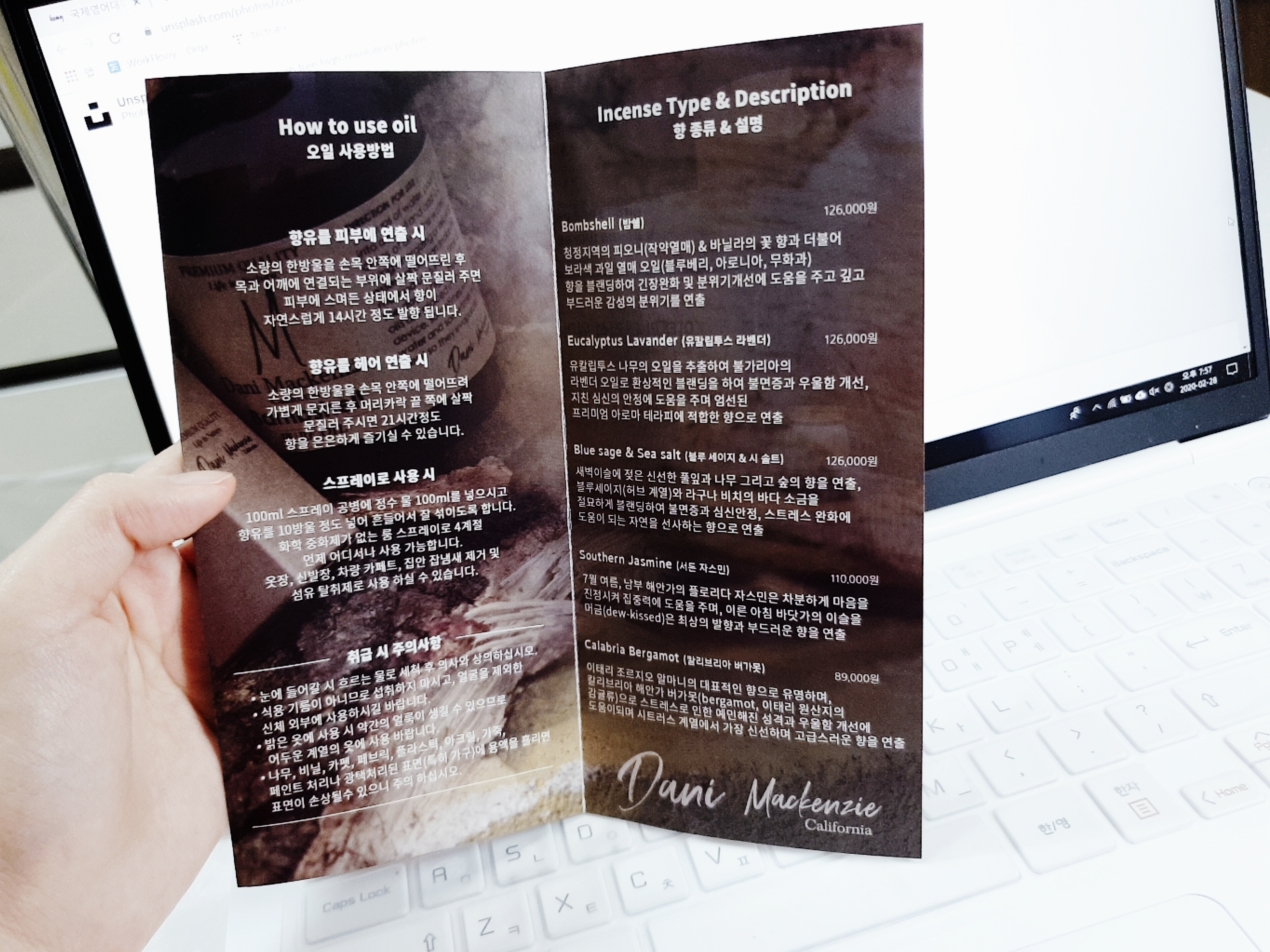 브랜드명 다니맥킨지 (천연오일향수, 디퓨저, 향초 판매)