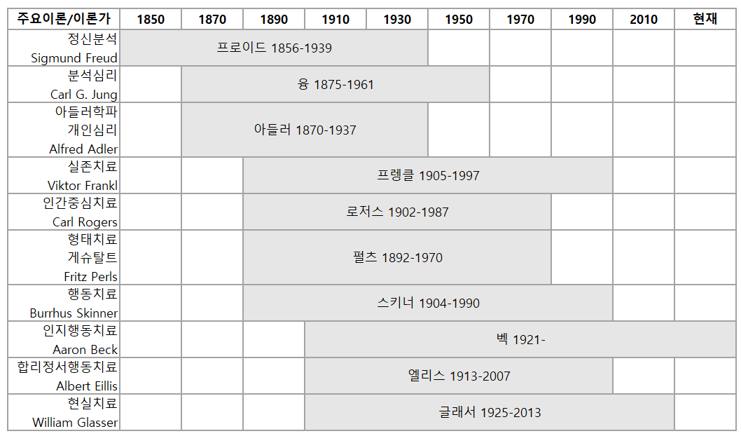 심리학 이론의 흐름에도 스토리가 있을 거라 생각하고 정리하다보니 정말 그렇더라구요. 뭐든게 그렇듯. ㅋㄷ 이번 수업 시 교수님께서 이론가들의 생애도 알고 이론을 배우면 더 좋을 것이라고 하셨고, 표도 주신김에 제가 정리한 것과 비교하며 다시 상기시켜봤어요.